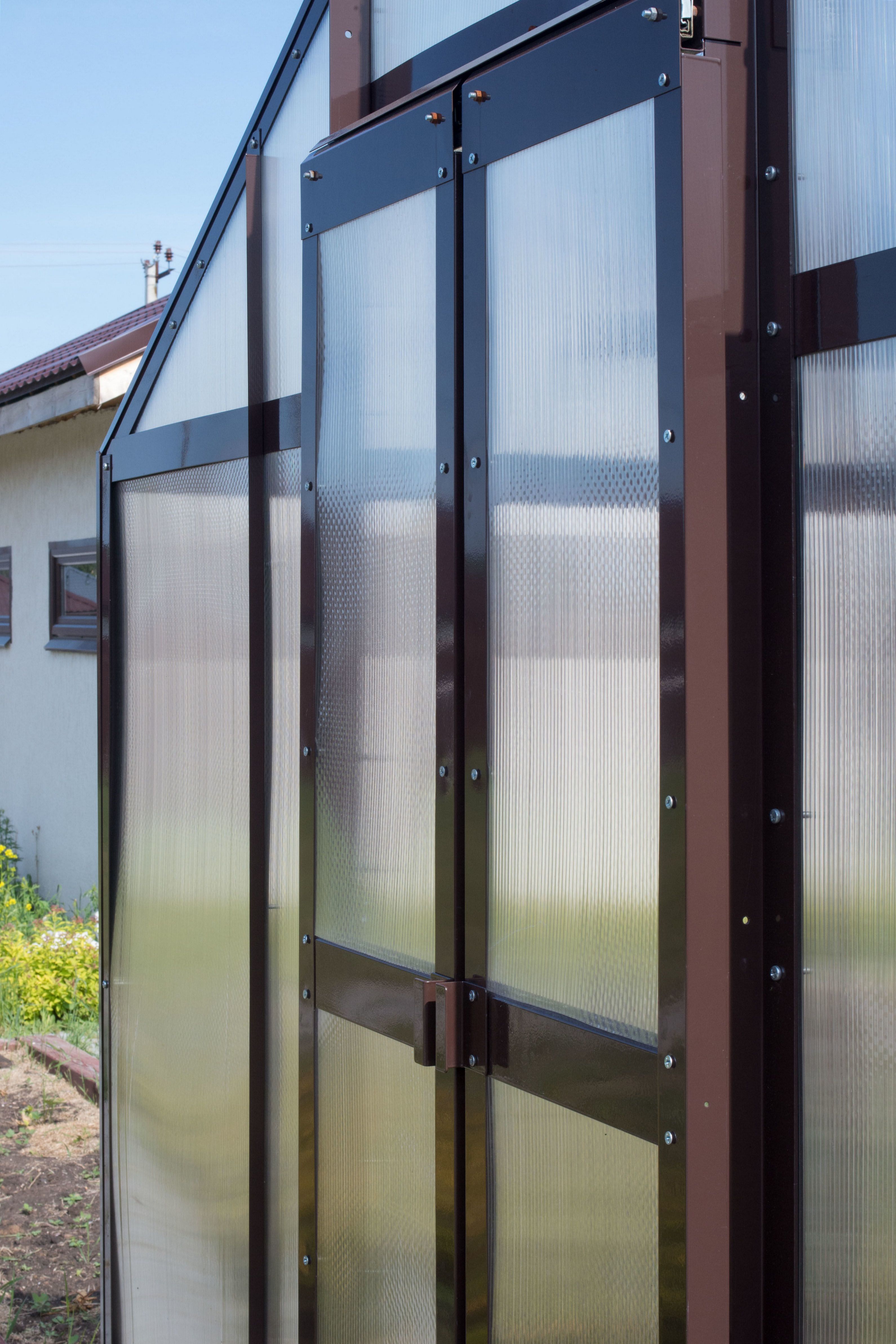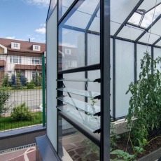 Длина базовой теплицы - 4 м., в комплекте: дверь-купе и две форточки в крыше.